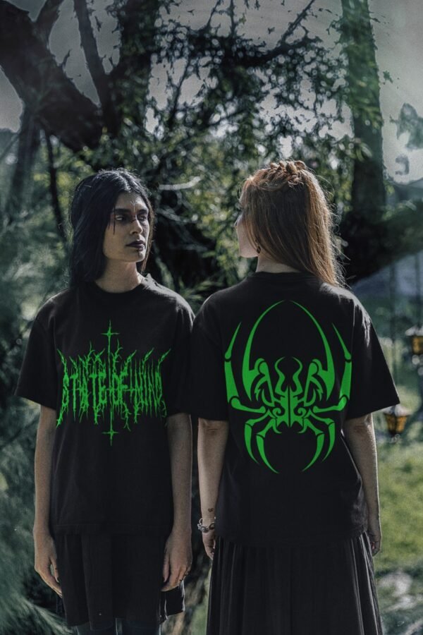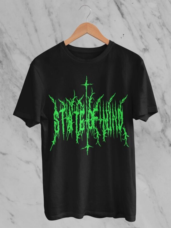 State of mind black 2s. Impresión por delante y por detrás de la camiseta.