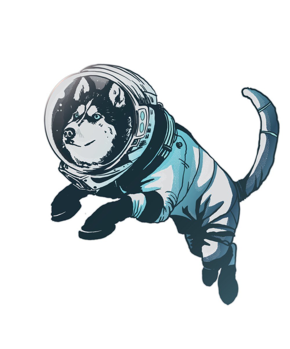 Perro husky astronauta.
